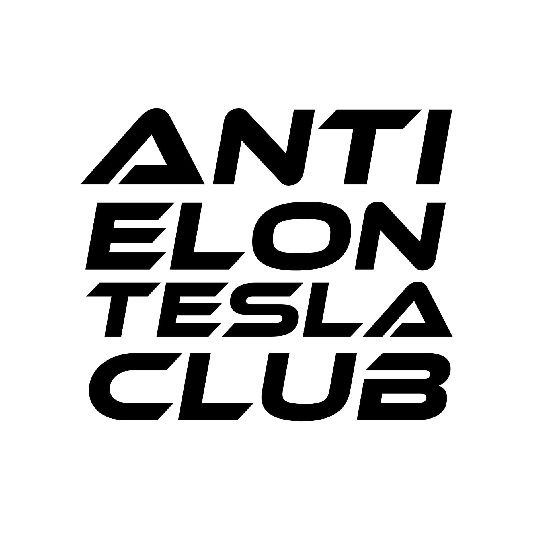 - "Anti Elon Tesla Club" design with bold futuristic font