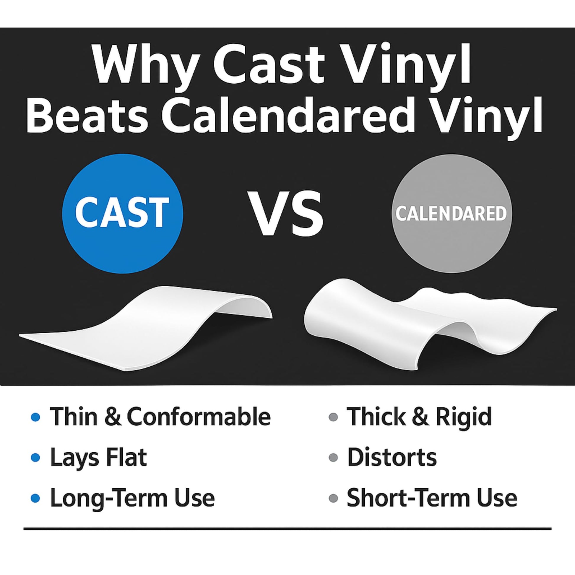 - Flexible cast vinyl conforms to flat and slightly curved surfaces. Applies smoothly with minimal bubbles for a clean, professional installation.